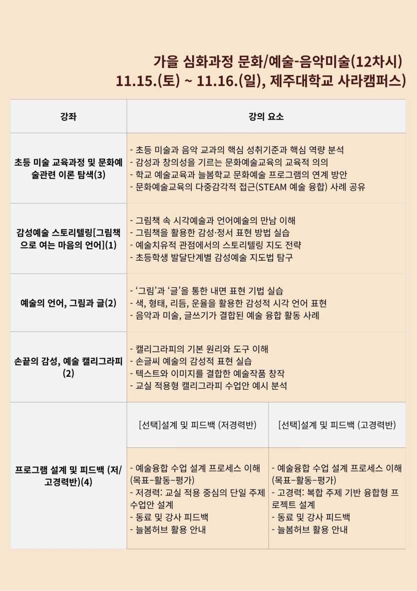 2025 늘봄학교 프로그램 강사연수(가을과정) 신청 안내-심화과정(문화예술-음악미술)