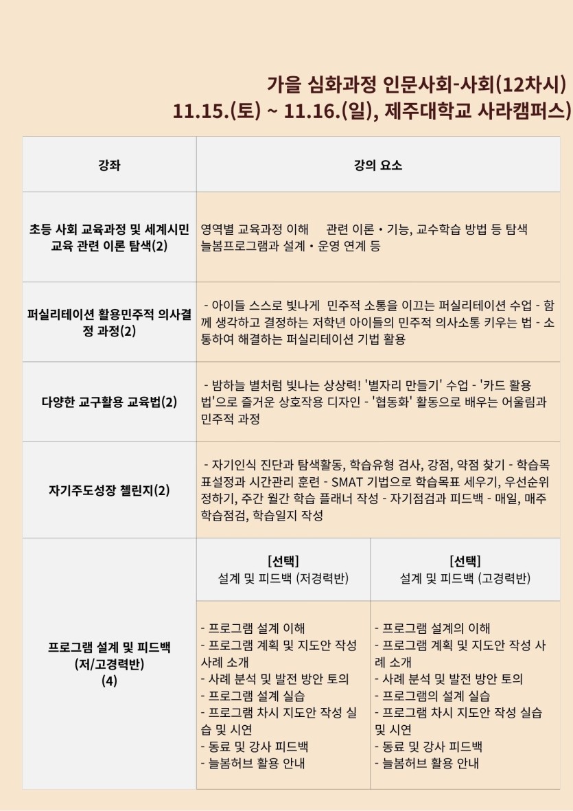 제주대학교 융합과학기술사회연구소에서 늘봄학교 강사연수 참여자를 모집합니다.