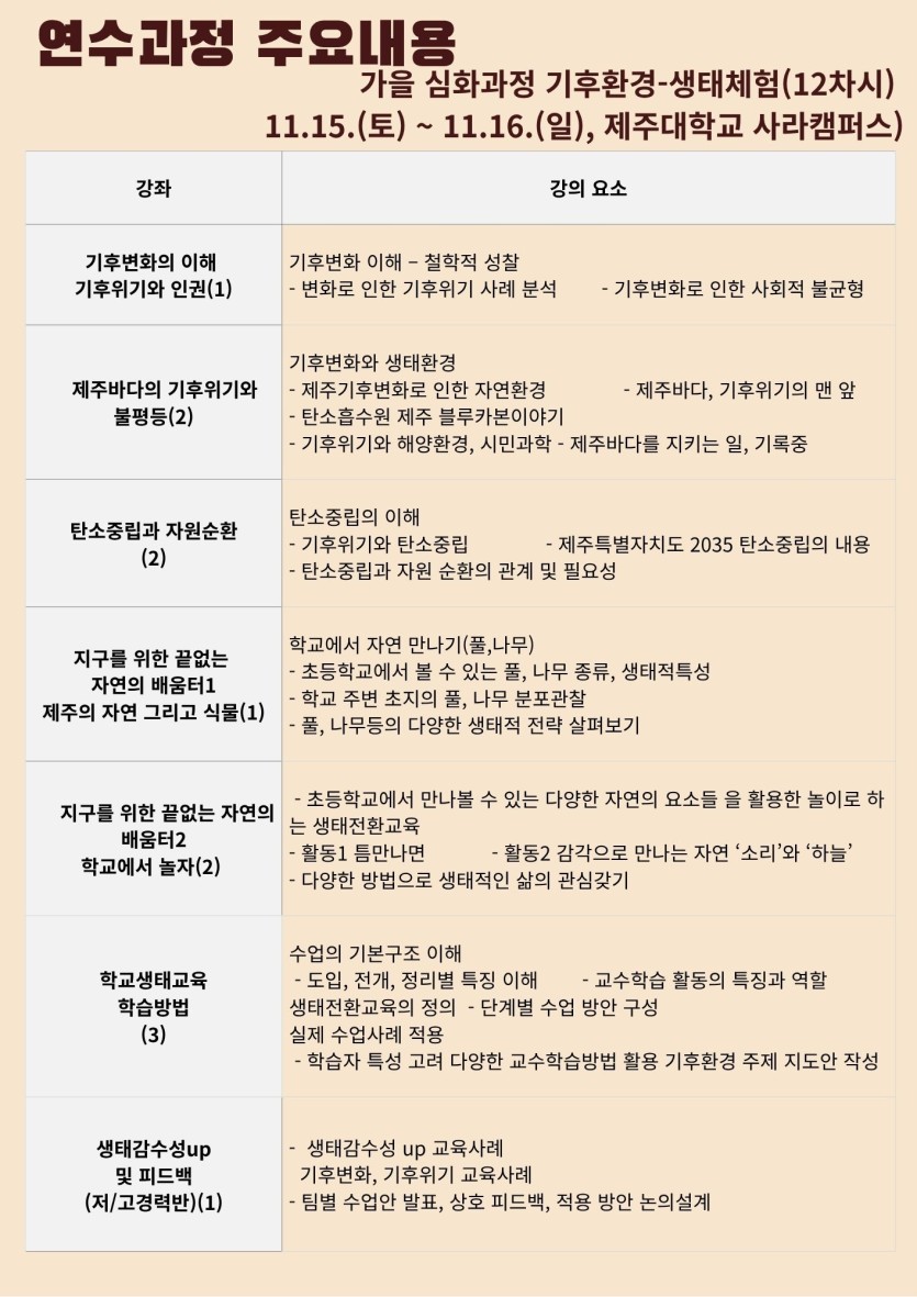 ○ 연수 장소: 제주대학교 사라캠퍼스