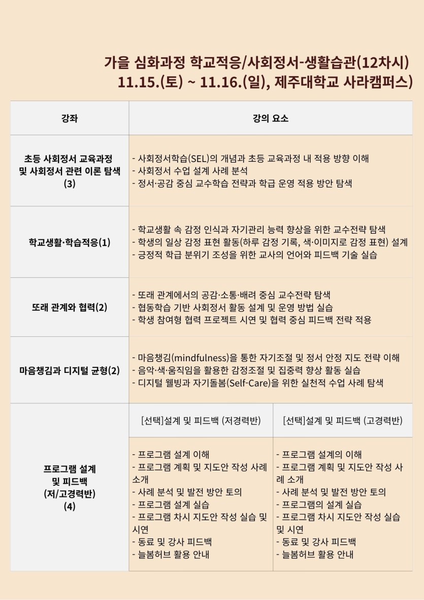 2025 늘봄학교 프로그램 강사연수(가을과정) 신청 안내-심화과정(학교적응/사회정서-생활습관)